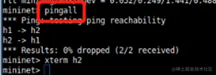 - Mininet> route—类似于Linux命令,用于定义节点路由表中的条目