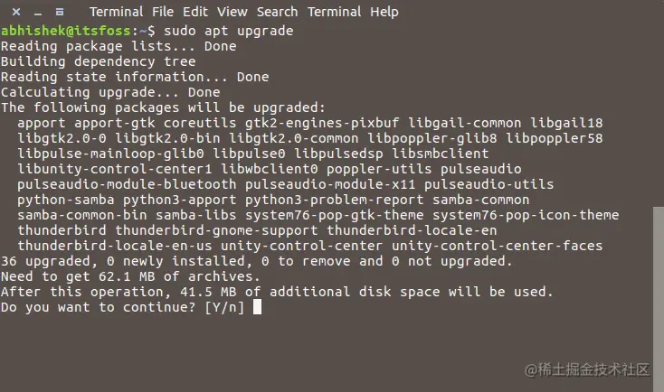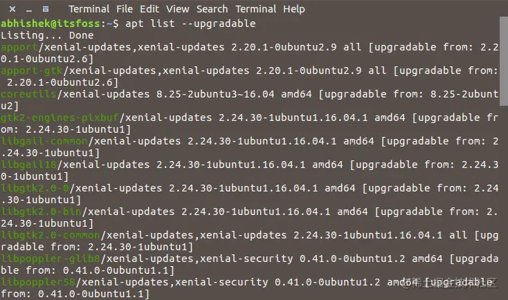 列出可更新的软件包及版本信息:apt list --upgradeable