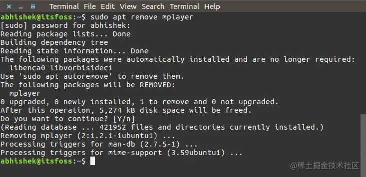 sudo apt remove mplayer