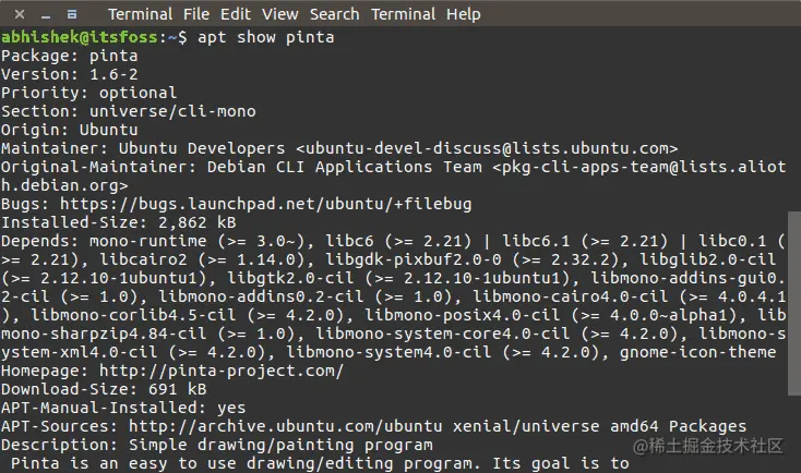 apt show pinta