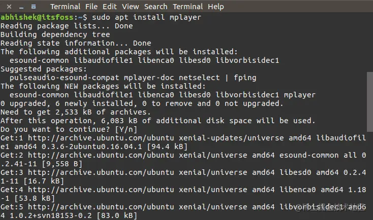 sudo apt install mplayer