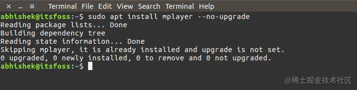sudo apt install mplayer --no-upgrade