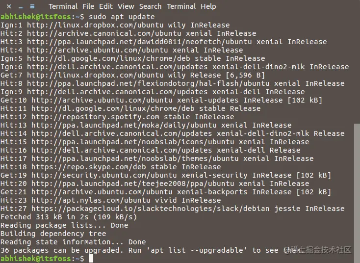 列出所有可更新的软件清单命令:sudo apt update