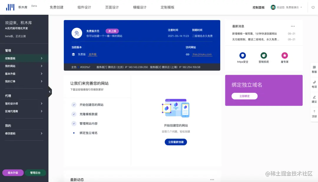 一个不会代码、不懂技术、不懂写程序、不会做网页的人,都可以快速搭建出一个专业的网站,今天,给你推荐一个网站,积木库,做网站像搭积木一样简单。
