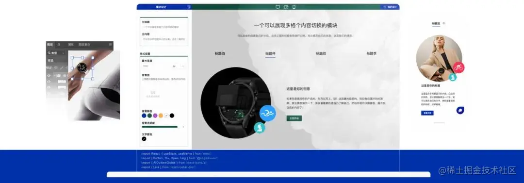 网站做好后,还能检查在平板笔记本、手机、小手机的最终显示效果,虽然积木库会自动适配,如果手动微调会显得更加细致。
