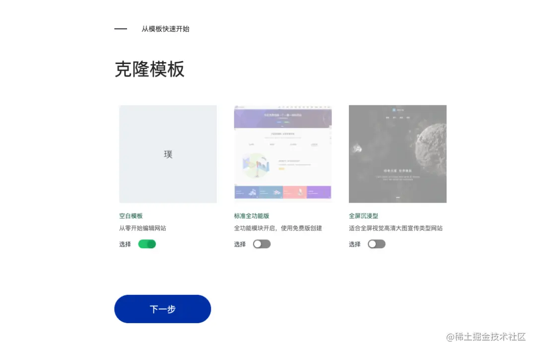 新用户注册,由AI引导创建过程,包括网站名称、企业颜色(提供了几百种中国色的选择)、功能模块启用、根据选择的模板快速克隆、导入数据等一系列引导操作,5分钟就完成了一个样版网站,再根据自己的内容配置和修改,真的没有什么难度。