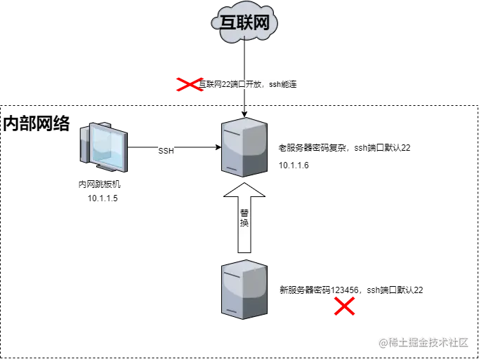 替换之前的老服务器外网端口也是开的,但是多年未被登陆,就是因为密码比较复杂。