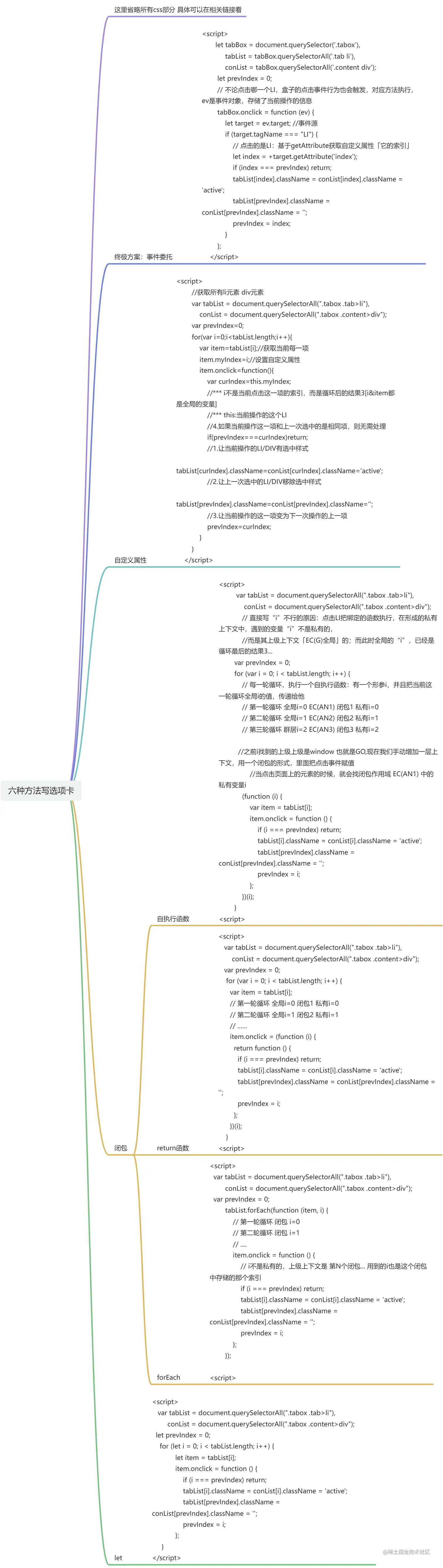每次for循环,就给li绑定一个点击事件,并且点击的事件的值是return里面的小函数,形成了不销毁的上下文 当我们点击li的时候,里面的小函数就会执行,变量i就是自执行函数里面的私有变量i