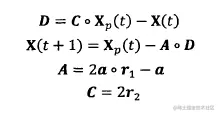 2)包围猎物( Encircling Prey )灰狼捜索猎物时会逐渐地接近猎物并包围它,该行为的数学模型如下: