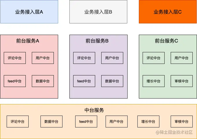 我们常听到的一句话:“大前台,小中台”,前台服务直接对接前端,会汇聚多个中台以及自己本身的业务,中台就只专注于某部分公共服务。当然这么说也不是说中台不好,各有所专嘛。随着国内互联网的极速发展,各垂直业务都有比较大的巨头,比如出行的滴滴,游戏的腾讯和网易,短视频的快手和字节,电商的阿里和拼夕夕,要想在这个大环境生存,就必须有快速验证的新业务的能力,这就需要我们有基础公共能力的支撑。在未来很长一段时间,我相信中台都是我们所要不断完善和建设的。