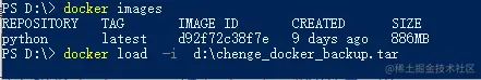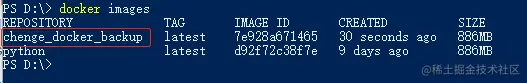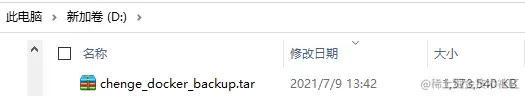 这里导出到D盘,并保存为chenge_docker_backup.tar的压缩包。