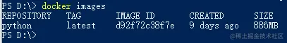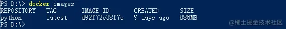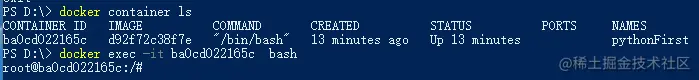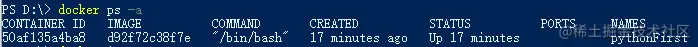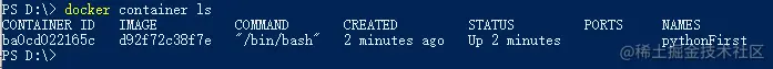 实际上这里的容器就是一个带有python环境的linux系统(这是另一个镜像,所有id不一样)
