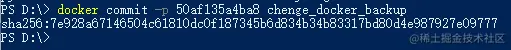 docker commit -p 50af135a4ba8 chenge_docker_backup