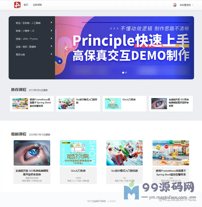 本系统为在线学习系统,主要用来教学视频和课件发布,供用户在线学习