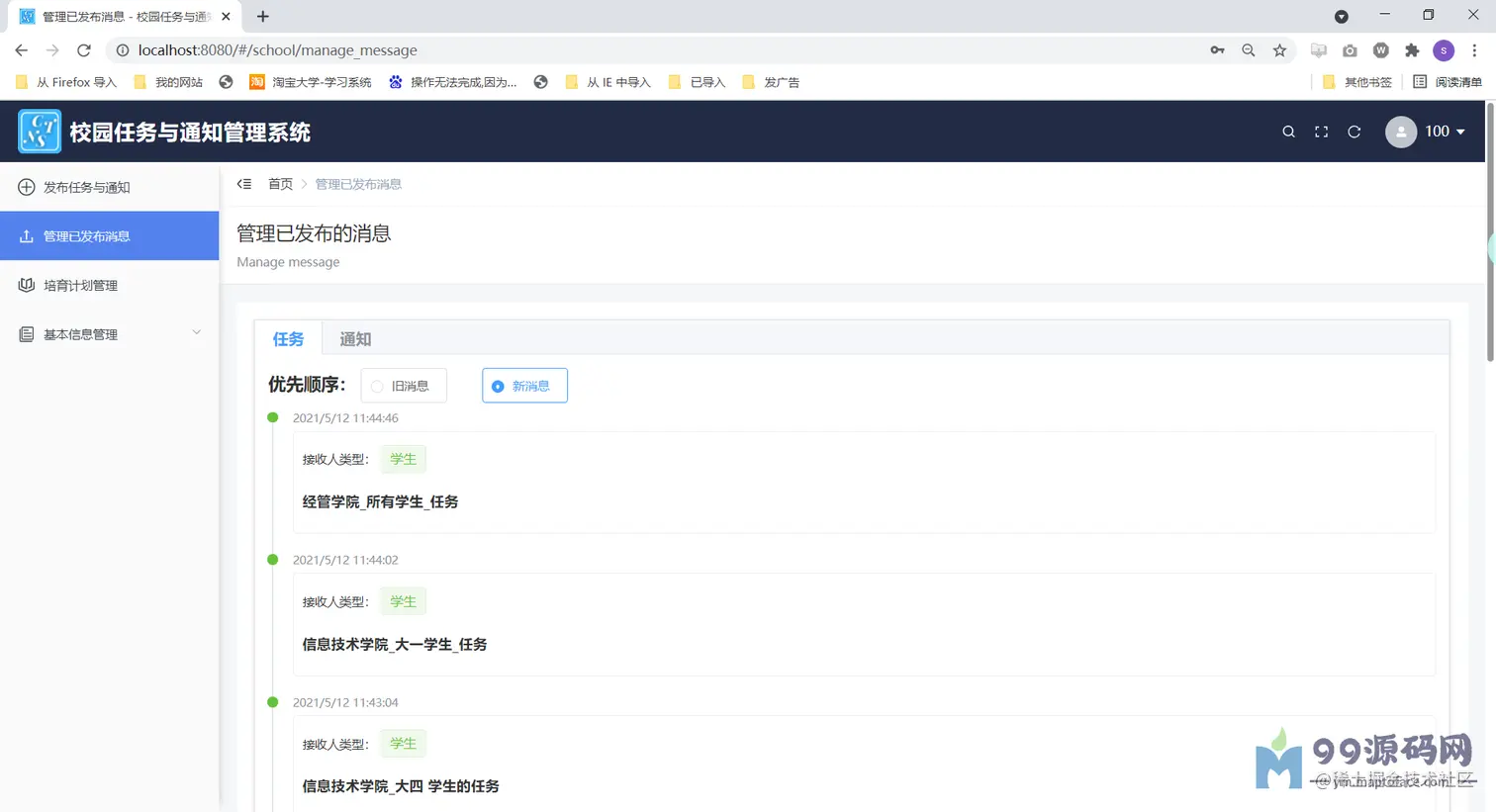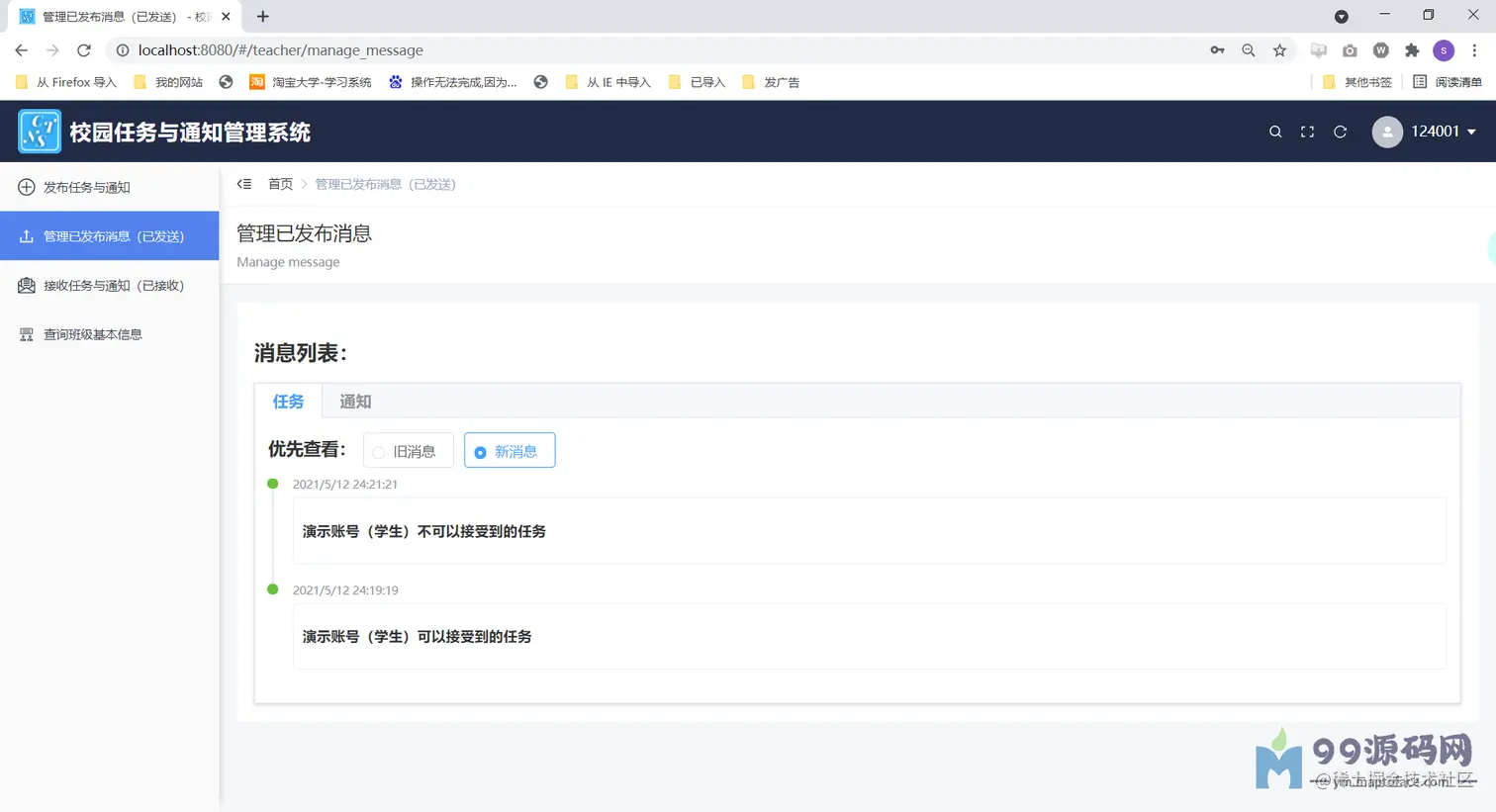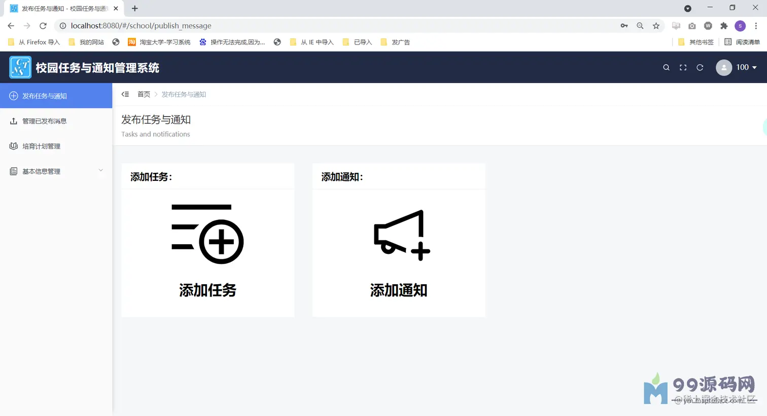 Springboot+Mybatis vue校园任务与通知管理系统(Java web前后端分离系统)