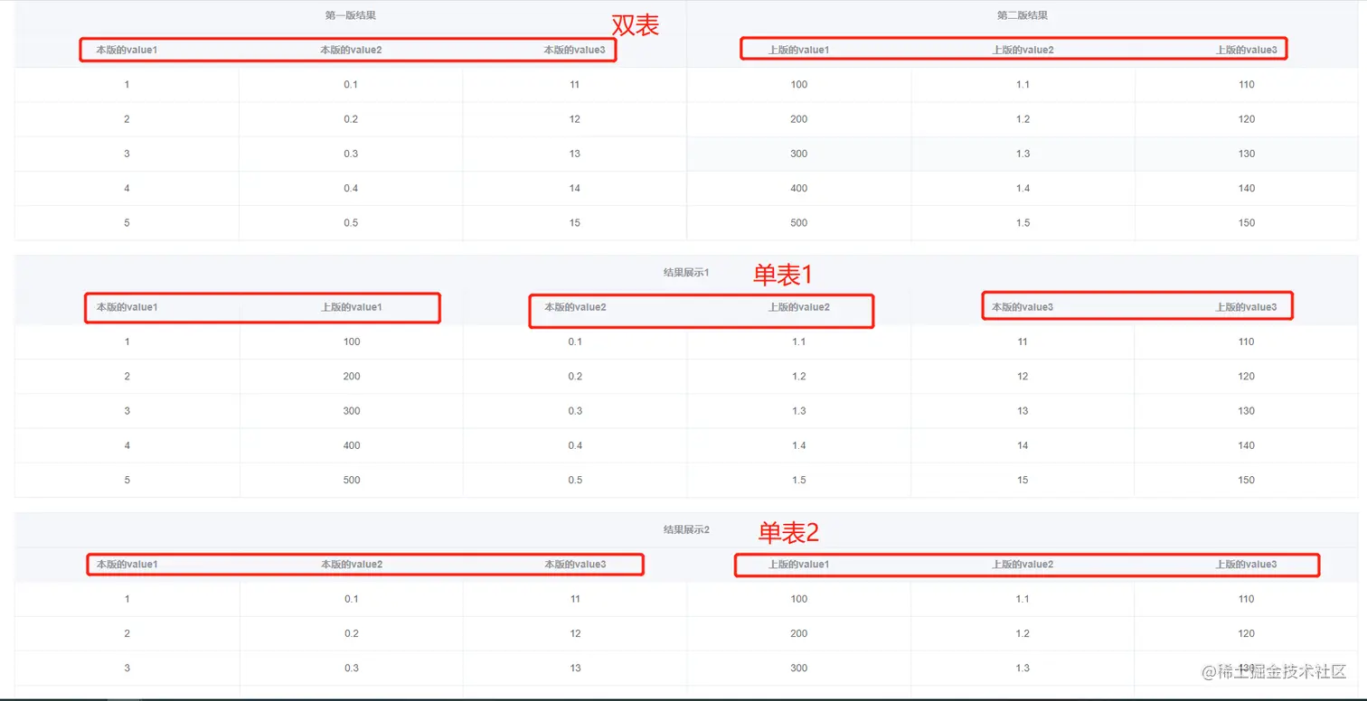 已知两组键相同,值不同的数据;要求table中渲染时,两组数据中的各个Array数组下标相同的数据要一一对应显示。