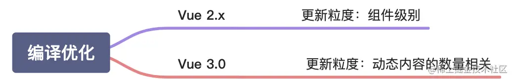 除此之外,Vue.js 3.0 在编译阶段还包含了对 Slot 的编译优化、事件侦听函数的缓存优化,并且在运行时重写了 diff 算法。