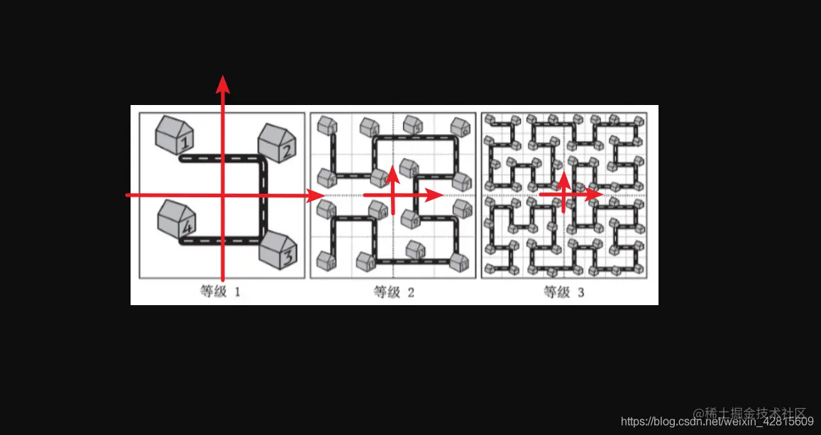 咱们首先规定,每个等级的坐标系原点是独特的,如下图。
