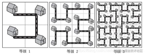 对于任意等级的城市,我们把正方形街区从左上角开始按照道路标号。