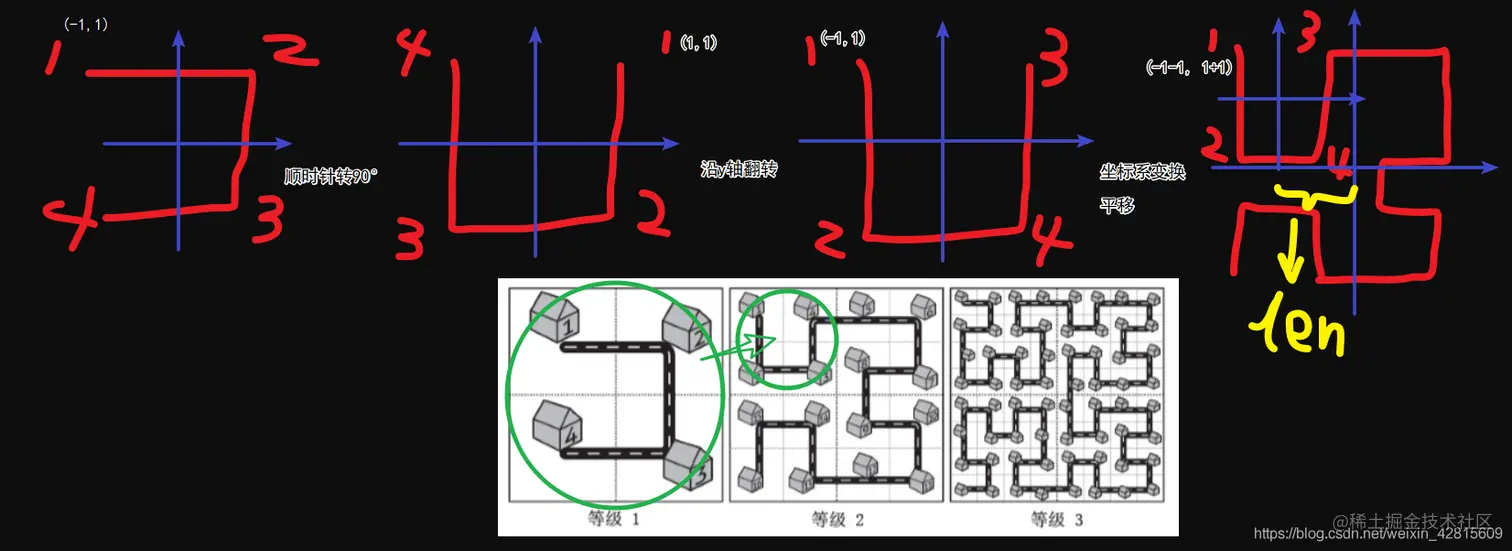 - 等级1放到等级2的左下象限,则相当于逆时针旋转了 90° ,并且还要沿 y 轴翻转