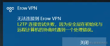 电脑连接不上公司的内网,连接报错:L2TP连接尝试失败,因为安全层在初始化与远程计算机的协商时遇到一个处理错误。