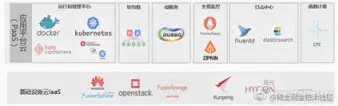 上层应用方案:基于 HaProxy、Dubbo、ElasticSerch 等建立负载均衡、微服务、全息监控、日志中心等周边配套云生态。