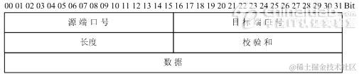 如图2-6所示,是UDP头部结构(RFC 793、1323):
