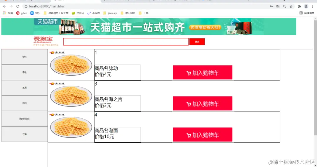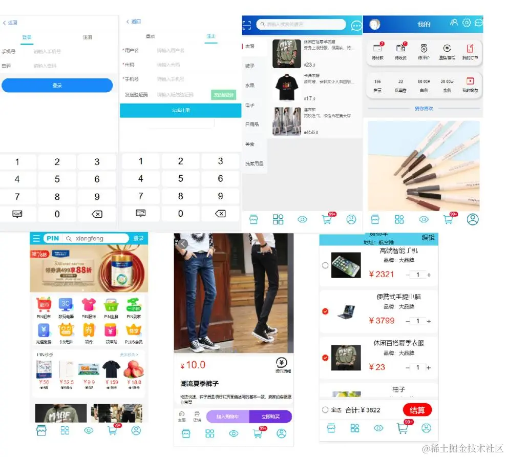 本项目为电商平台用户端的功能实现,主要功能模块有登录注册,商品搜索,商品展示,加入购物车,地址管理,订单管理及个人中心,同时,完成了个功能之间的页面跳转与业务逻辑。