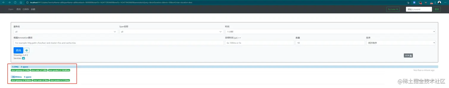 到这里我们就完成了分布式系统中服务链路跟踪的解决!那为我们解决了问题呢?
