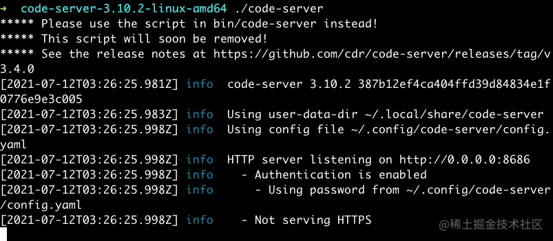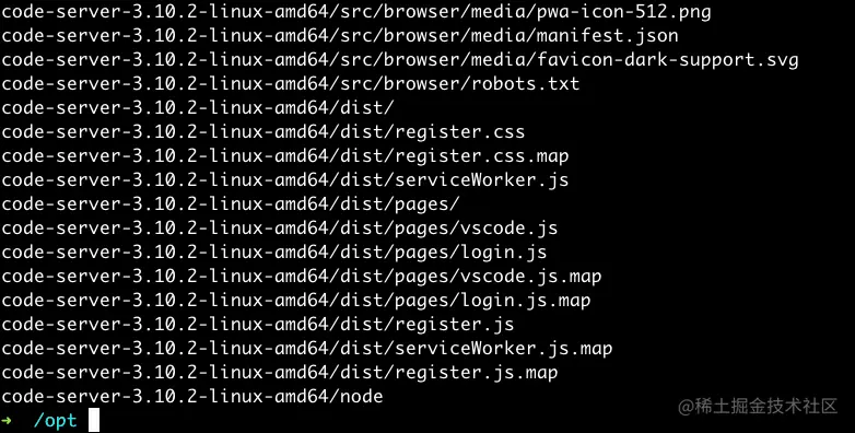 我们到这一步,在命令行输入code-server , 无法启动code-server, code-server命令本体 在/opt/code-server-3.10.2-linux-amd64/bin 文件夹中