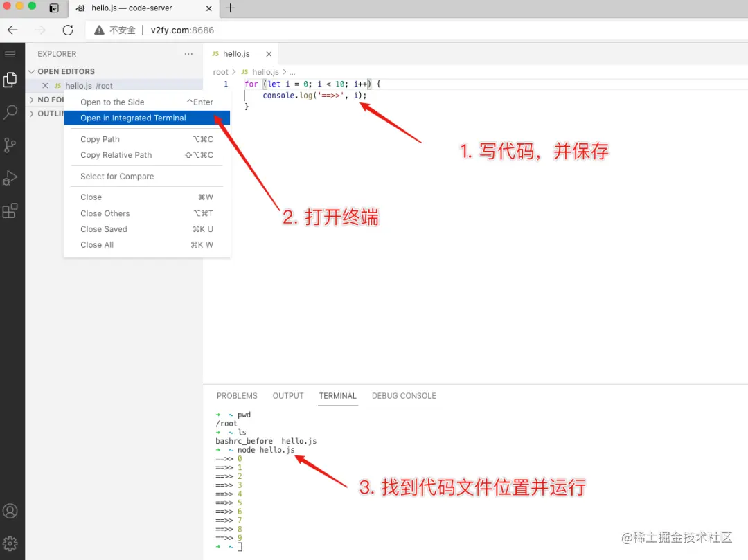 代码和开发环境完全运行在服务端, vscode还可以打开服务器上各种文本配置文件, 进行编辑, 也可以直接打开shell终端, 可以作为 ssh 客户端来使用 ~