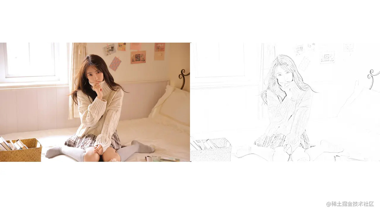你好,我是悦创。这次呢,我给大家带来的是 50行代码,生成一张素描图。让自己也是一个素描“大师”。那废话不多说,我们直接先来看看效果吧。