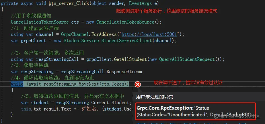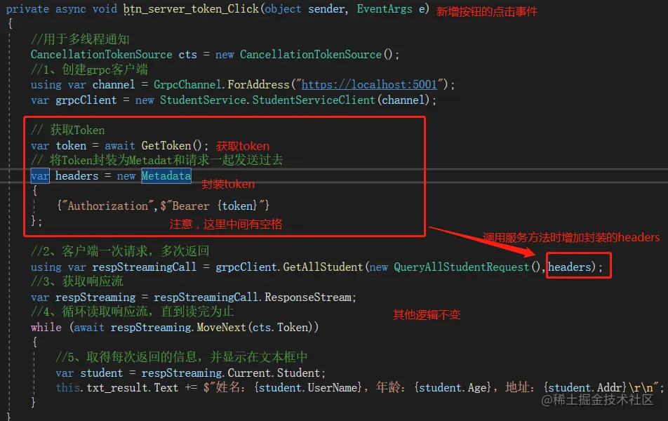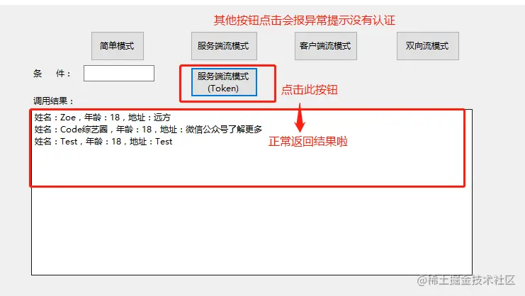 这里将服务端流模式的按钮复制一个出来,在其点击事件中增加带Token的逻辑