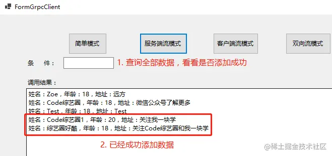 点击服务端流按钮查看全部数,看看是否添加成功: