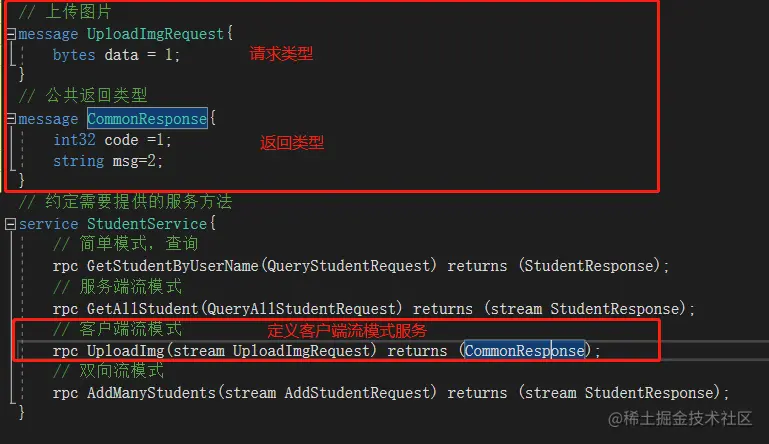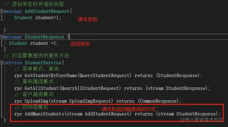 student.proto文件保证和服务端一样同步添加相应的内容