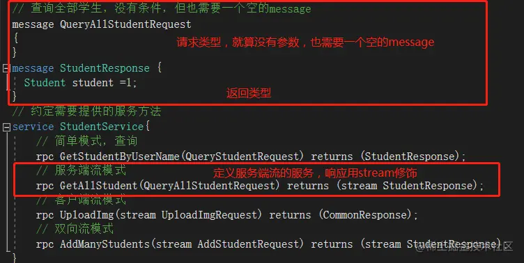 rpc GetAllStudent(QueryAllStudentRequest) returns (stream StudentResponse);