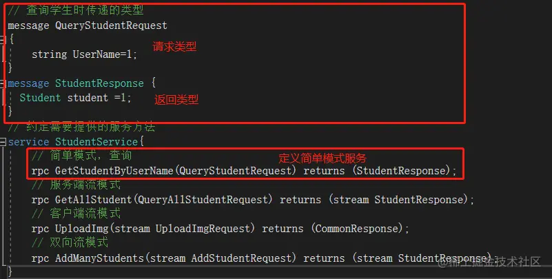 rpc GetStudentByUserName(QueryStudentRequest) returns (StudentResponse);
