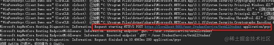 gRPC的四种模式就简单介绍这么多,小伙伴可以根据提供的思路应用到项目中。 在演示案例中是不是感受到gRPC相比WebApi有更多的选择和优势,另外通过服务端的控制台可以看到,交互使用的是HTTP/2协议,小伙伴感兴趣可以去了解一下: