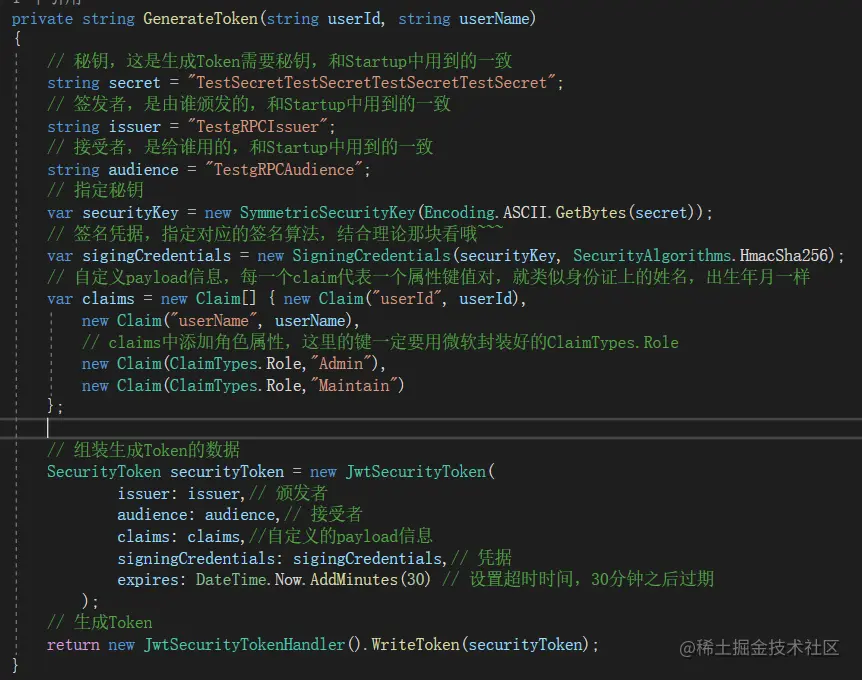 生成token的核心逻辑为方法GenerateToken,如下:
