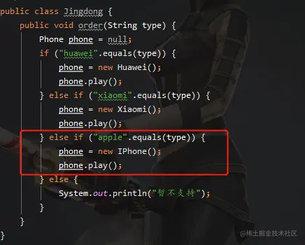 项目虽然可以完美的运行,但是有一个问题值得我们思考,假如又增加了苹果手机,这时候我们的代码该怎么修改