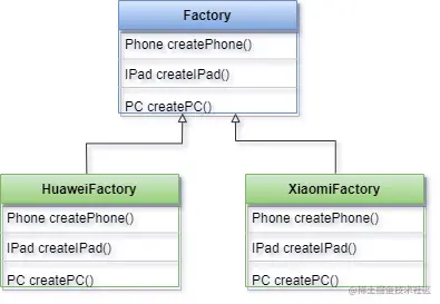 比如案例中华为的手机、ipad和电脑都属于华为公司产品,所以可以由华为工厂类来负责分别创建不同的对象