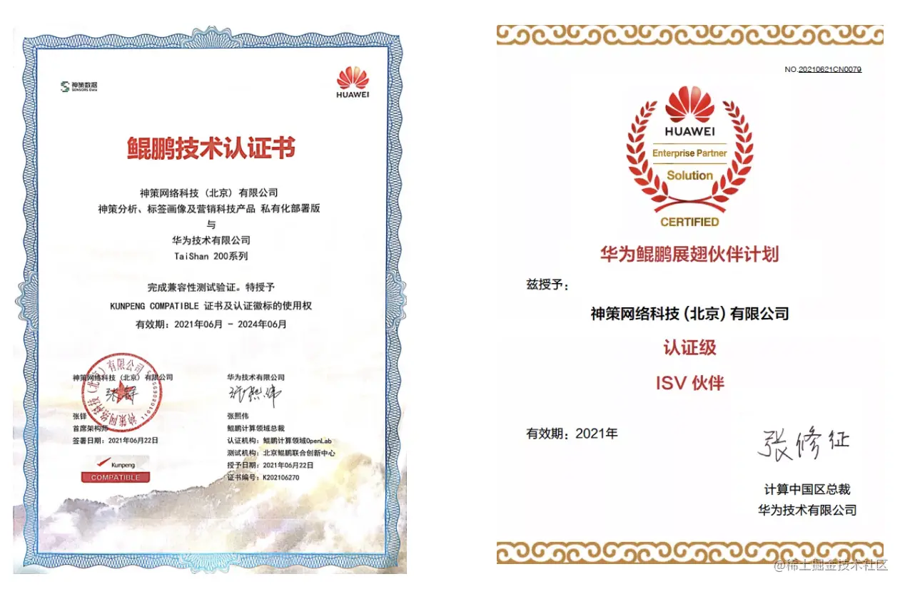 同时,神策数据的大数据和营销科技产品(神策分析、标签画像及营销科技产品)获得华为鲲鹏兼容性认证。神策数据联合华为计算开源 Arm 生态团队、北京鲲鹏联合创新中心,基于华为已在上游社区完成 Arm 使能的开源软件版本,经过功能、性能、安全等多轮测试,标志着神策数据的大数据和营销科技产品已与华为鲲鹏完成兼容性互认。