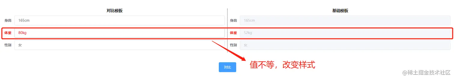 <!-- form表单对比,并标记有差异的项 -->