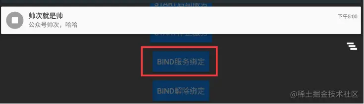 android:text="bind服务绑定"/>