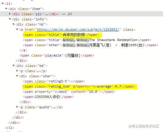 - 观察目标网站(豆瓣)的请求体(url,method)和响应体(返回的是text/html,∴通过元素选择器获取目标值)