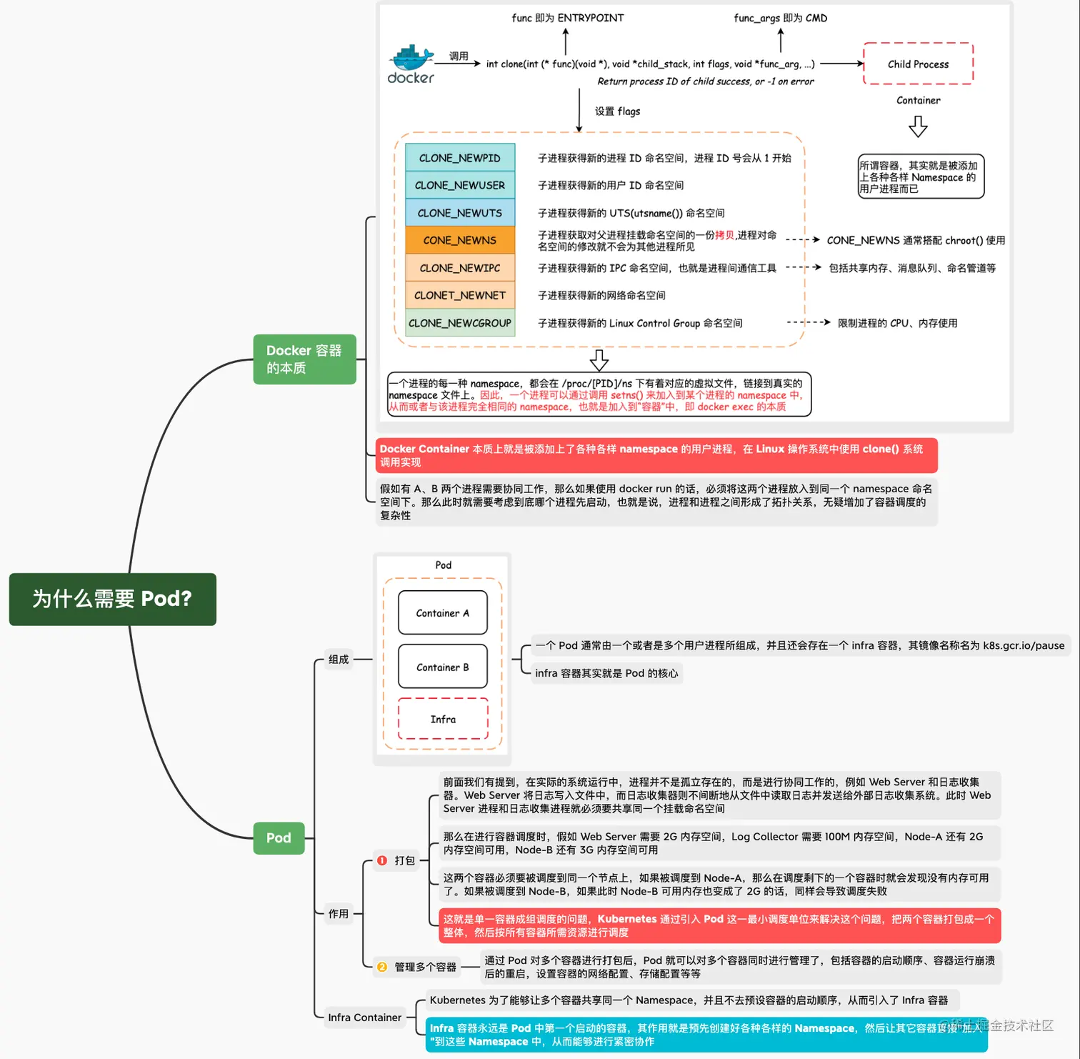 无论学习任何知识,我们都要经历“先把书读厚,再把书读薄”这个过程。读厚就是分解、详细分析,是输入的过程,读薄便是归纳总结,是输出的过程。归纳总结最好的方式就是思维导图这种模式,计算机领域也不例外。GitHub 上有位热心大佬就用思维导图总结了自己对 Linux 操作系统,网络,C++,Golang 以及 Kubernetes 的理解。例如:为什么需要 Pod?