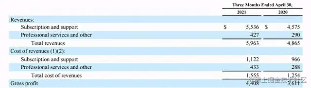 ·高毛利:SaaS业务的收入成本很低,因为软件部署几乎没有实施成本,所以毛利率会维持在较高水平。以Salesforce为例,2022财年第一季度(截至2021年3月31日),它的总营收是59.6亿美元,但毛利润就有44亿美元,毛利率高达74%。