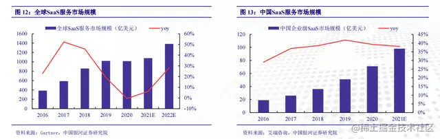 中国市场的步伐慢一些,艾瑞咨询发布的《2020年中国企业级SaaS行业研究报告》指出,2019年中国企业级SaaS服务市场规模达到51亿美元,预计2021年,中国SaaS市场将达到98亿美元,占比全球市场的8.32%。