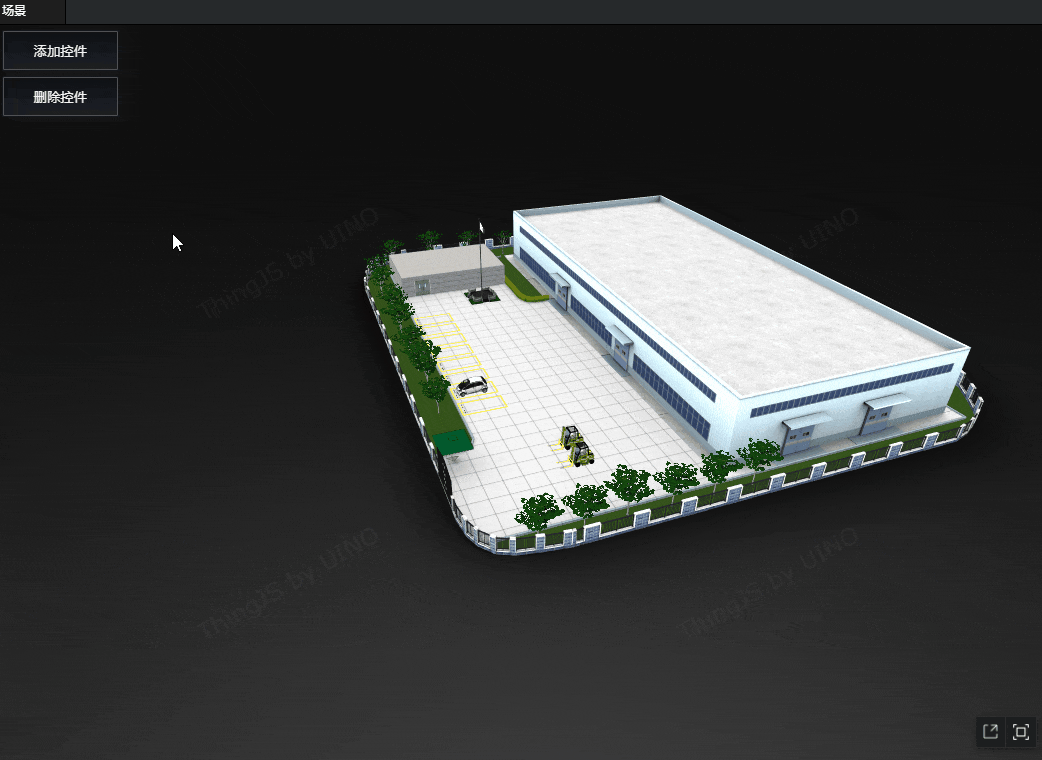initThingJsTip("本例程展示了平台内置的键盘控制摄影机交互的控件,添加控件后可以通过键盘 W A S D 控制飞行, Q E 控制升降,点击左侧按钮进行体验");