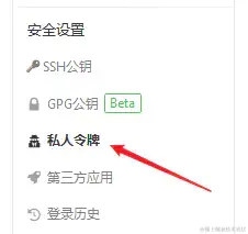 - 找到右边安全设置里面的私人令牌